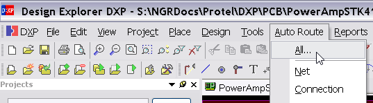 Proses routing (pembuatan route /jalur PCB) sedang berlangsung: